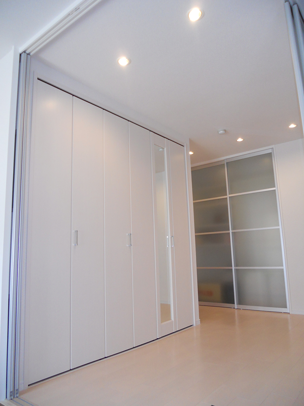 扉1枚分を鏡にして、扉のタイプは稼働式にいたしました。